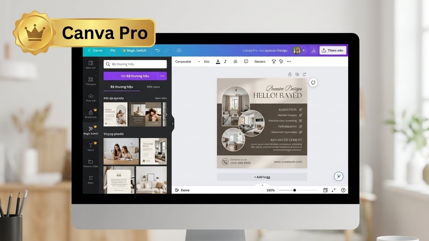 Canva là nền tảng thiết kế đồ họa trực tuyến phổ biến nhất thế giới nhờ giao diện kéo-thả cực kỳ đơn giản. Việc sở hữu tài khoản Canva Pro giúp bạn phá bỏ mọi giới hạn của bản miễn phí, mở cánh cửa bước vào kho tài nguyên khổng lồ và các công cụ hỗ trợ trí tuệ nhân tạo (AI) đỉnh cao như Magic Edit, Magic Write.